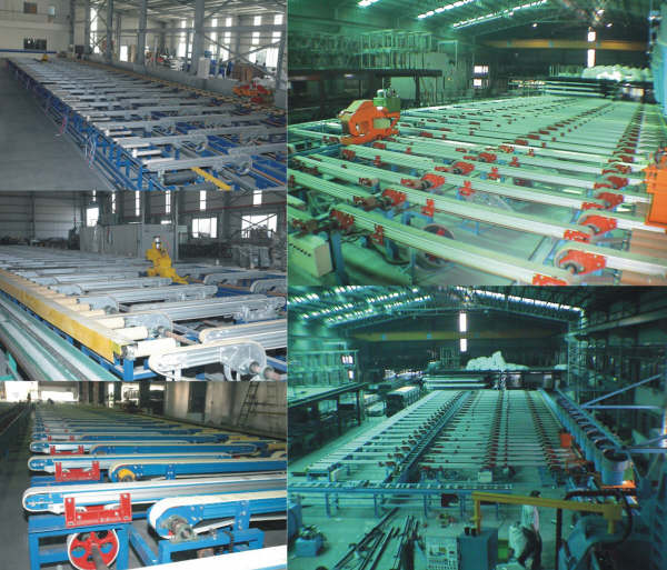 Automatic Handling System – Belt Type This equipment consists of initial table, roller sleeve raise/lower conveyer (adjustable speed), run out transfer table (belt type), cooling table (belt type), stretcher, stretcher transfer table (belt type), storage table (belt type), sawing transfer table (roller sleeve type), product sawing table, length gauge table, automatic control. Feature: